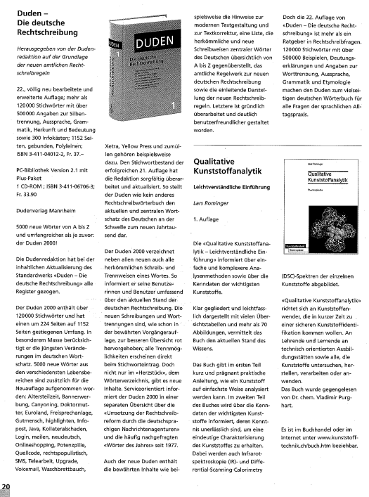 - Lehrmittel: „Qualitative Kunststoffanalytik“. 3. Auflage
