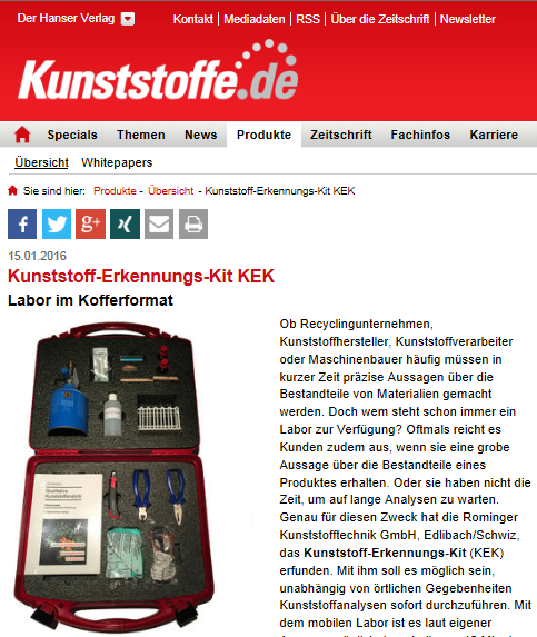 - Laborkoffer: KEK Kunststoff-Erkennungs-Kit. Weltweit erfolgreich im Einsatz